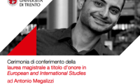La laurea magistrale a titolo d’onore in European and International Studies, a cui Antonio era iscritto, è stata consegnata dal rettore Flavio Deflorian ai familiari di Antonio, la madre, il padre, la sorella Federica accompagnati dalla fidanzata Luana Moresco, presidente della Fondazione intitolata a Megalizzi. “Questo conferimento è di grande significato - queste le parole di Mattarella -. Una grande dimostrazione di valore civile e morale, così come è grande l’impegno degli amici di Antonio a sviluppare le sue idee”. Mattarella ha definito commovente il fatto che le persone che gli sono state più vicine abbiano animato la fondazione a lui intitolata e ne sviluppino le attività e ha quindi ricordato “il desiderio, l’attitudine, il progetto”, propri di Megalizzi, “di promuovere l’importanza dello spirito critico, il confronto di opinioni, non solo di comprendere ma di far comprendere”. Con particolare riguardo “al processo in corso, unico al mondo, che sta portando in Europa una condizione di pace, di collaborazione, di tutela dei diritti e della democrazia che è la base dell’Unione europea”. “Antonio - ha concluso - è morto a Strasburgo, luogo simbolo dell’integrazione europea. Dalle contrapposizioni ad un futuro comune, questo è il messaggio che stiamo ancora una volta esprimendo”.