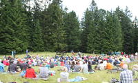 “L'ho composto a New York - spiega Chiriro Yamanaka - un posto decisamente diverso da questo”. E quell'aria metropolitana la si è respirata davvero, prima nella lunga introduzione in cui la musica vive di una dimensione quasi sotterranea e poi quando sale aerea quasi a voler gareggiare con le incredibili altezze dei grattacieli della Grande Mela. Sono stati infine molti gli apprezzamenti dell'artista per la location e la tipologia di festival e non si fatica a crederlo con l'ampio prato verde a fronteggiarla e gli abeti appena mossi da una brezza impercettibile a farle da corona. Forse anche per questa dimensione particolare il ricordo è corso all'infanzia e il saluto finale è stato affidato a un brano giocoso, composto a soli 8 anni, sul quale tutti hanno tenuto il tempo applaudendo e intitolato, nella traduzione italiana, "Ciao". (m.b.)
