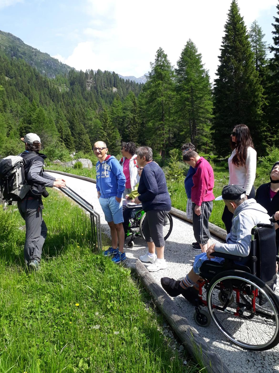 Il gruppo di dieci ragazzi dell’Anffas, affiancato da un assistente ambientale del Parco, Michele Zeni, e da un appassionato fotografo locale, Angelo Davorio, ha percorso quindi il primo dei luoghi più belli e adatti che sono stati censiti: l’itinerario “Un sentiero per tutti” in località Nudole in Val di Daone. Questo sentiero è stato realizzato nel 2015 proprio per essere fruito anche da persone con disabilità, soprattutto con ridotta capacità motoria e non vedenti. E’, infatti, completamente pianeggiante, sbarrierato, dotato di bordi “batti-bastone” e fondo liscio. Inoltre, i testi dei pannelli guidati sono tradotti anche in Braille mentre le fotografie sono stampate in rilievo.