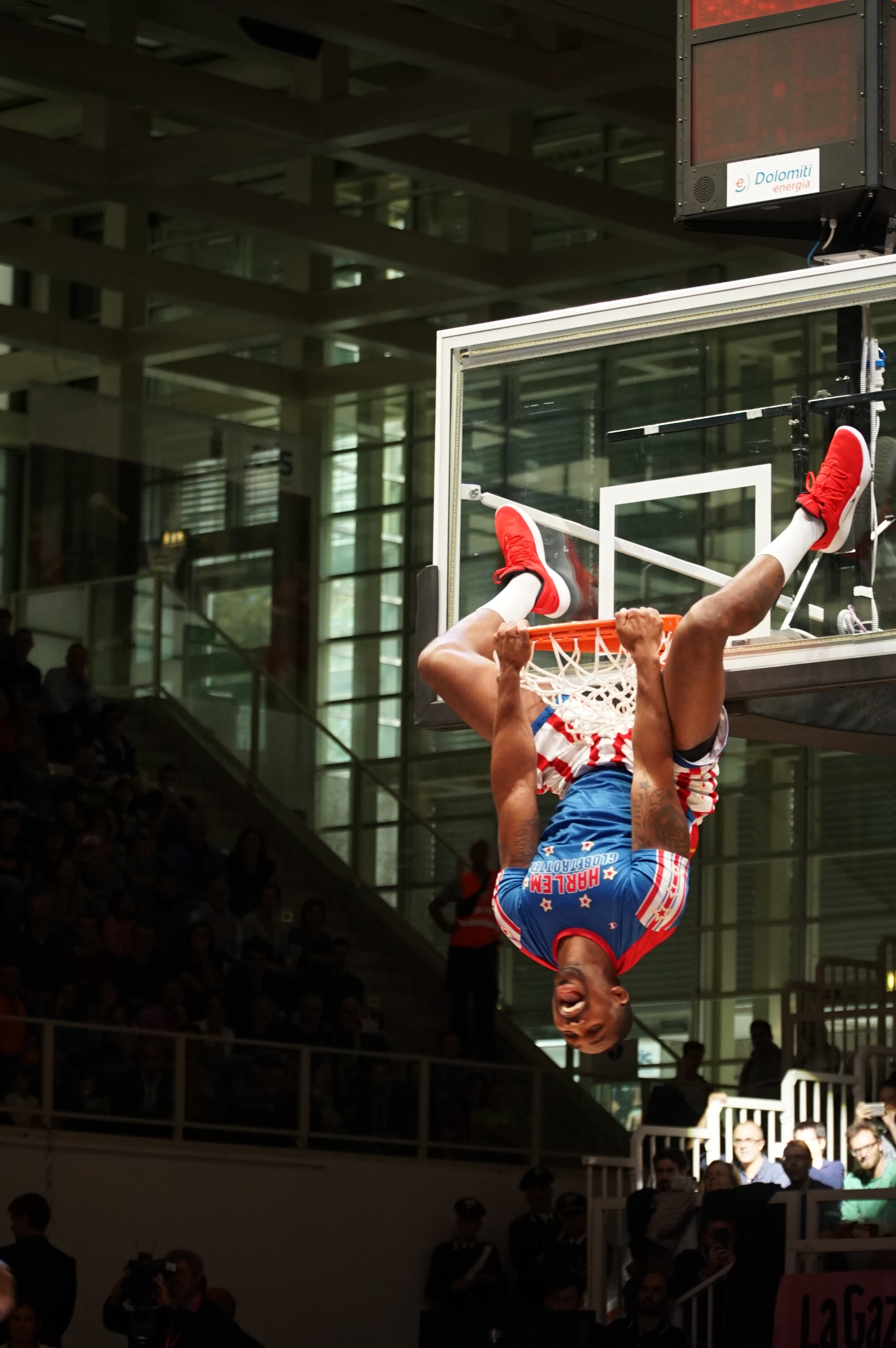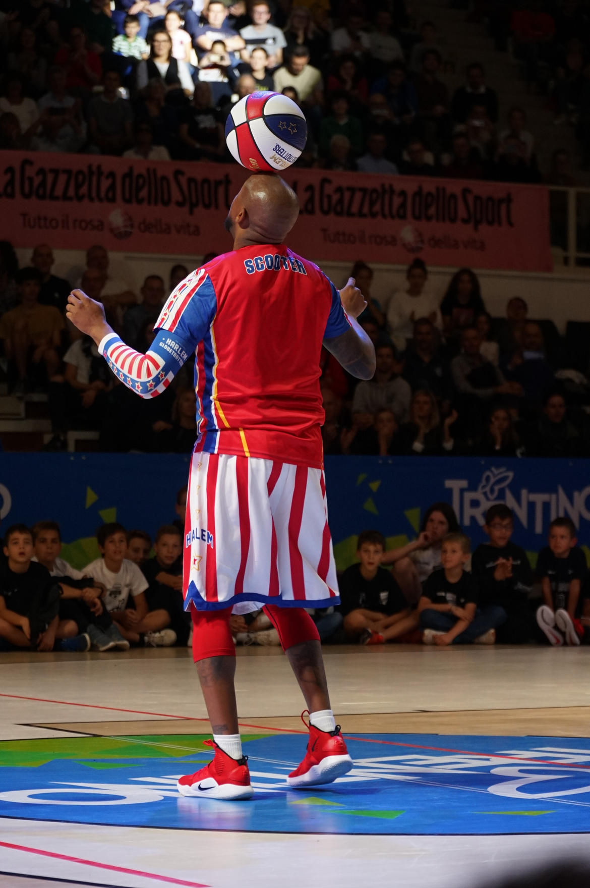 Capaci di coinvolgere bambini e adulti nelle loro gag, gestite con doti teatrali di sicuro effetto. E lo hanno dimostrato anche a Trento. Dopo aver posato il microfono e fatto parlare, come solo loro sanno fare, la palla a spicchi. Con le loro doti atletiche, l’affiatamento, la coordinazione, l’abilità, ma anche la grande umanità espressa nelle spassose gag, basate su improvvisi cambi di mano, palleggi da sdraiati e in movimento sulla schiena, ma anche in ginocchio, senza mai perdere il controllo della palla e scherzando insieme al pubblico. Scooter Christensen detiene un record: far roteare la palla sul naso per quasi 8 secondi. «Mi sono allenato tanto – ha confidato al pubblico – e mi sono persino ustionato il naso perdendo sangue…». Mentre Handles Franklin ha raccontato di essersi innamorato degli Harlem guardando un cartone animato ed è riuscito a coronare il suo sogno di giocarvi. Tanto che il pubblico ha tributato loro, alla fine dell’esibizione, un vero e proprio abbraccio, oltre al meritato applauso. Coach Dunbar ha spiegato che gli Harlem hanno una squadra di scout che girano il mondo per reclutare i migliori giocatori afroamericani. Carisma, personalità, abilità, a servizio dell’allegria e della gioia dello sport.