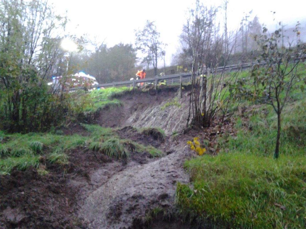 Smottamenti diffusi, ma di piccola entità, lungo la SS 612 tra Cembra e Lisignago.