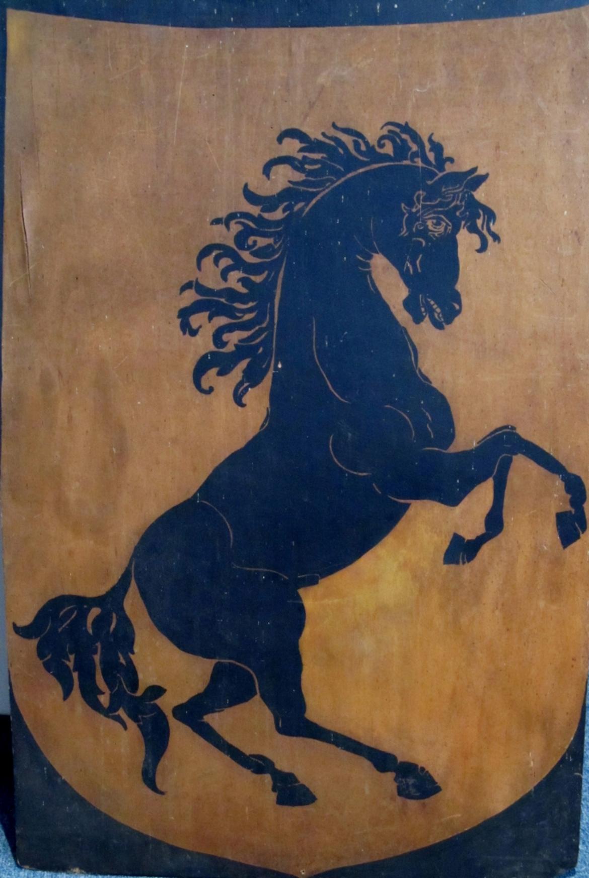 Il cavallino rampante – di colore argenteo su campo rosso, rivolto a sinistra e con la coda abbassata – era lo stemma araldico del "Piemonte Reale Cavalleria", uno dei più prestigiosi reparti dell'Esercito Italiano, presso il quale Francesco Baracca prestò servizio ad inizio del Novecento.