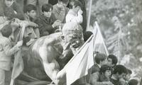 Ripercorrendo la storia recente del gruppo scultoreo, l’appuntamento darà conto della fine degli usi retorici che ne avevano accompagnato la nascita e la successiva appropriazione da parte del regime fascista; nel secondo dopoguerra, emergono anzi atteggiamenti di rifiuto e insofferenza verso l'enfasi patriottica già associata all’immagine del poeta "nazionale". È quanto attesta la straordinaria serie fotografica che Flavio Faganello dedicò al gruppo scultoreo di piazza Dante in occasione della manifestazione del Primo maggio 1968: immagini spartiacque, con grappoli di studenti accalcati tra i bronzi, che riflettono una sensibilità radicalmente mutata rispetto agli anni in cui l'opera era stata il simbolo dell'italianità del Trentino e il biglietto da visita della città.