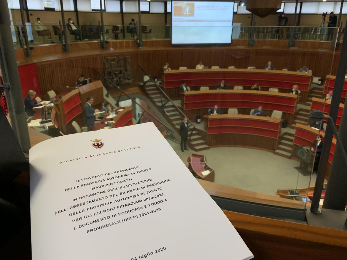 Presentato oggi al Consiglio provinciale dal presidente della Provincia autonoma di Trento l'assestamento del Bilancio di previsione 2020-2022 e il Documento di economia e finanza provinciale 2021-23. La manovra è segnata naturalmente dall'insistere della pandemia, definita un evento capace di separare ciò che era stato prima dal "dopo", un evento dunque che richiede ancora molto impegno e responsabilità collettiva, e che segue peraltro alla tempesta Vaia, che già aveva messo il territorio a dura prova, ad inizio legislatura. Fra gli impegni evidenziati dal presidente, la tutela della liquidità delle imprese, le misure di sostegno ai redditi e di supporto alle famiglie in difficoltà, la salvaguardia dell’occupazione. Gli spazi di intervento consentiti dall'assestamento non sono molti, considerato che la partita finanziaria con lo Stato è ancora in via di definizione, e le opportunità che l’Unione Europea assicurerà agli Stati membri, in relazione agli accordi raggiunti in settimana, sono ancora un grande punto interrogativo. In ogni caso, il Trentino è riuscito "da solo" a tamponare uno sbilanciamento di oltre 350 milioni sull’esercizio 2020 e di circa 235 milioni sul 2021 a fronte dei minori gettiti causati dalla pandemia e a mettere "sul piatto" altri 450 milioni circa nel biennio 2020-2021 per investimenti e incentivi di diversa natura. Tre infine le parole d'ordine: burocrazia, che va semplificata; operatività, per agire concretamente ed in maniera tempestiva a sostegno dell'economia e del lavoro; contenuti, che vanno declinati anche sul breve e lungo periodo (ad esempio, con l'avvio della scuola di medicina)
