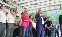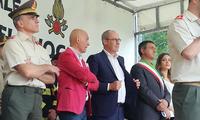 Con il governatore Ugo Rossi e l'assessore Tiziano Mellarini c'era il presidente della Federazione dei vigili del fuoco volontari del Trentino Tullio Ioppi, l'ispettore distrettuale Michele Alberti, il presidente della comunità di Valle Mauro Malfer, sindaci, primo fra tutti, il sindaco di Ledro che ospita il campeggio, Renato Girardi. Madrina della cerimonia, già allieva volontaria dei vigili del fuoco del Trentino, Alice Rachele Arlanch, Miss Italia