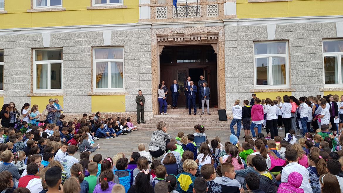 Rossi ha chiesto ai ragazzi di aiutarlo a fare, attraverso un forte applauso, gli auguri alle migliaia di coetanei che iniziano la scuola oggi, ma anche a quell'autentico "esercito" di professionisti che dedicano tanta energia e passione per garantire alta la qualità della nostra scuola. "Impegniamoci tutti, voi compresi, a mantenere questi standard", ha detto il governatore che poi ha rivolto un pensiero ai bambini ospitati anche quest'anno nella scuola costruita dai trentini ad Amatrice ed a quelli che si stanno integrando nella nostra comunità. "Vi auguro - ha detto Rossi - che siate sempre pronti a pensare che tutti noi abbiamo un compagno o una compagna di banco che, magari, ad un certo momento, può avere bisogno di qualcosa: in quel momento è importante che percepisca di non essere solo. La scuola è anche questo: ci insegna a sapere stare assieme".