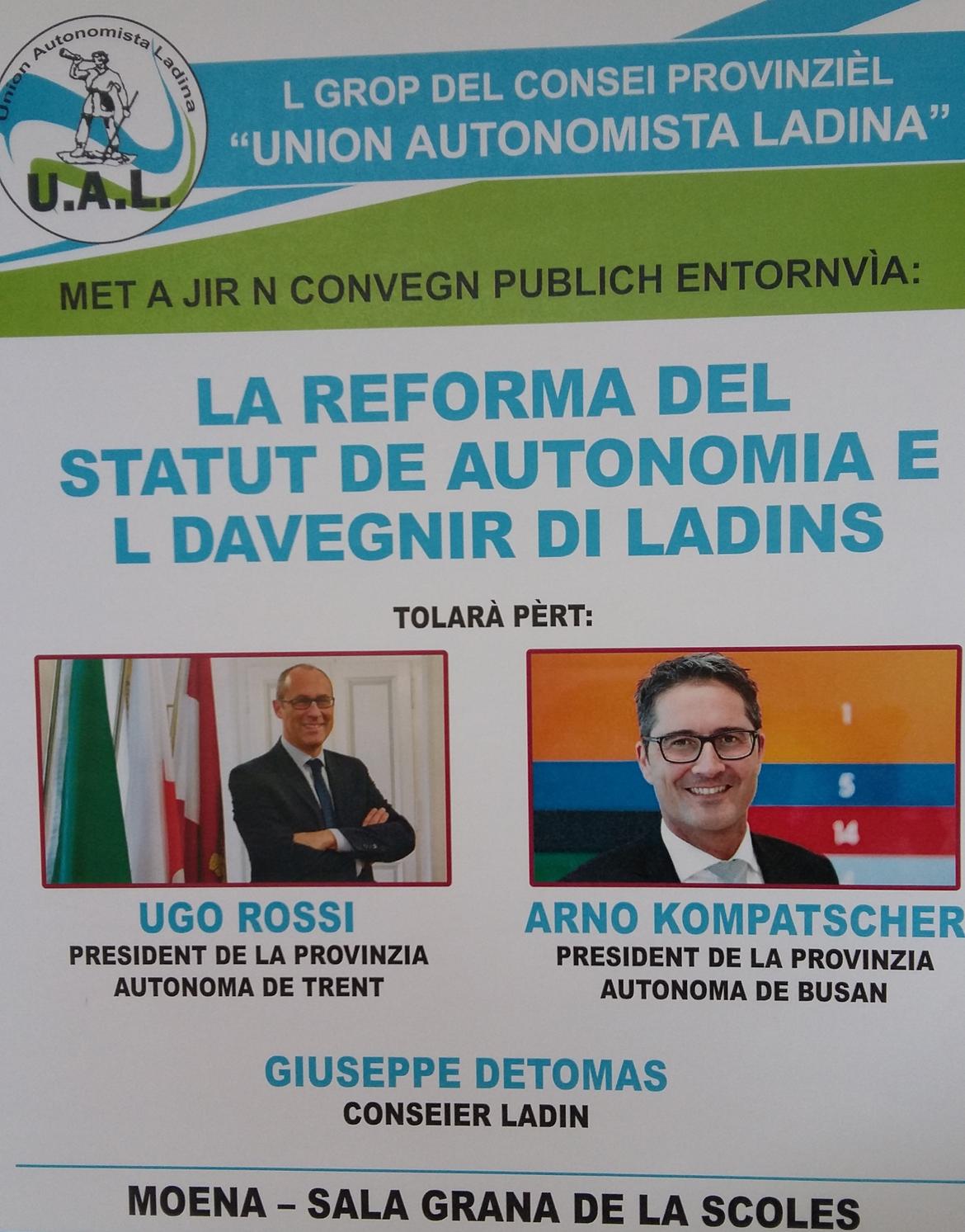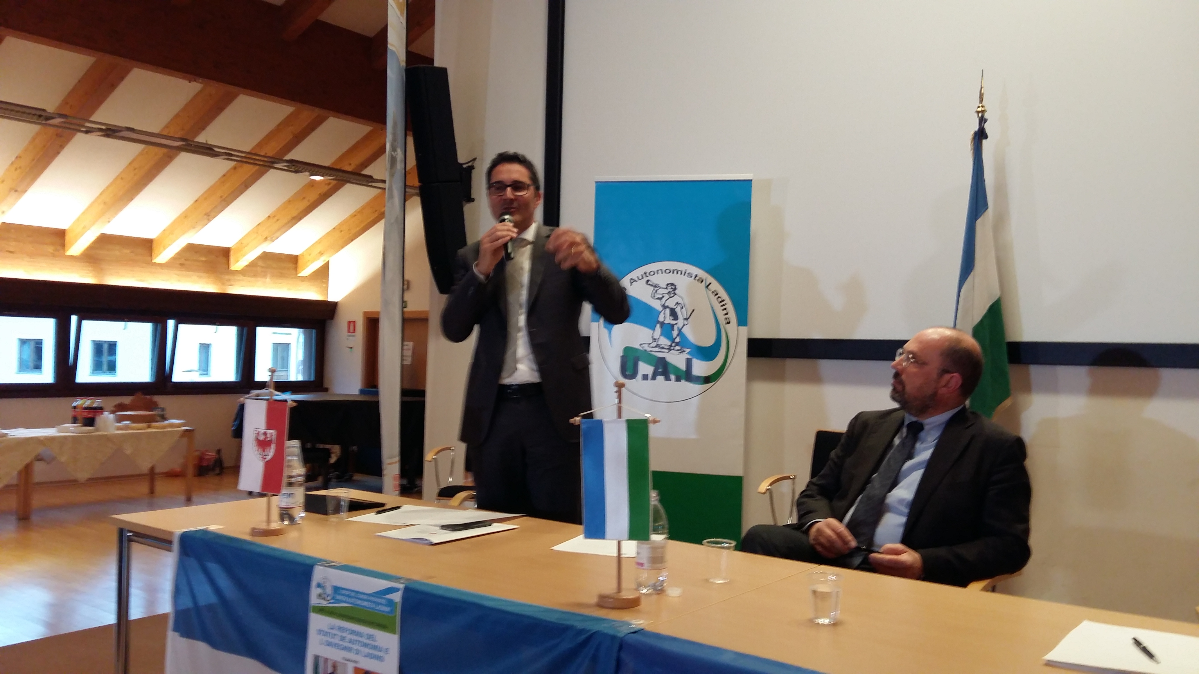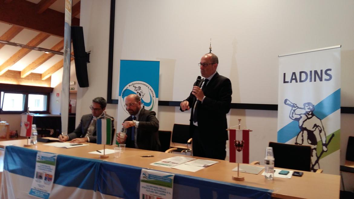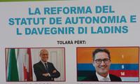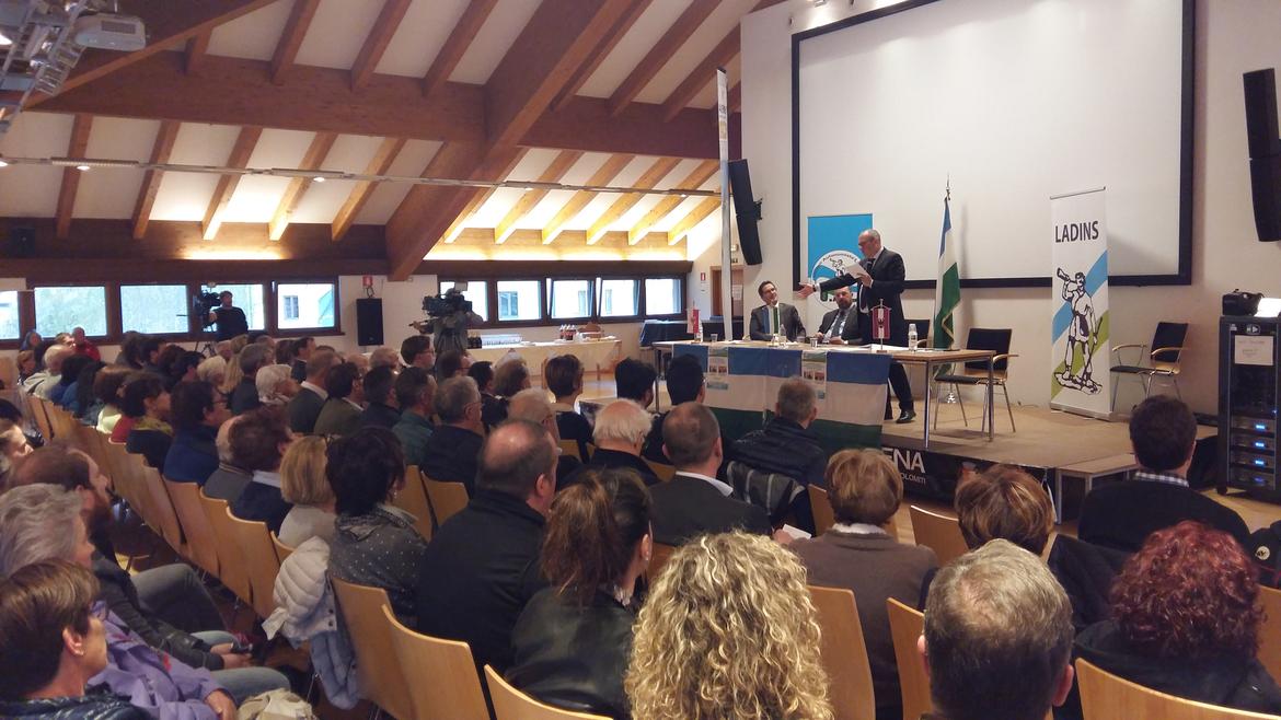 "L'identità si costruisce attorno ad elementi anche valoriali - ha ricordato Detomas in apertura di serata - e in questa fase mi pare che su questo non si rifletta abbastanza. Certo, mettere sotto i riflettori i nostri valori costitutivi può rappresentare un rischio, specie ora che l'Autonomia del Trentino Alto Adige viene vista con sospetto dagli altri territori, ma è un rischio da correre. Dobbiamo considerare innanzitutto i cambiamenti intervenuto in Europa dalla fine degli anni 80 ad oggi. Rispetto alla prima stagione autonomistica, prima la caduta del comunismo, poi il trattato di Schengen, hanno cambiato il valore dei confini e anche, di riflesso, la dialettica fra minoranze linguistiche e stati nazionali. Parimenti sono cambiati parametri e valori economici, come quello della nostra produzione idroelettrica, un tempo considerata strategica. Tutto questo impone delle riflessioni. Dobbiamo davvero pensare cosa tenere, quali sono gli elementi identitari che ancora ci contraddistinguono in maniera forte, qui, in un territorio a cavallo fra due province. Una cosa è certa: la questione ladina e' centrale nel contesto del dibattito sul nuovo Statuto, rappresentando un elemento di unione nel contesto regionale".
