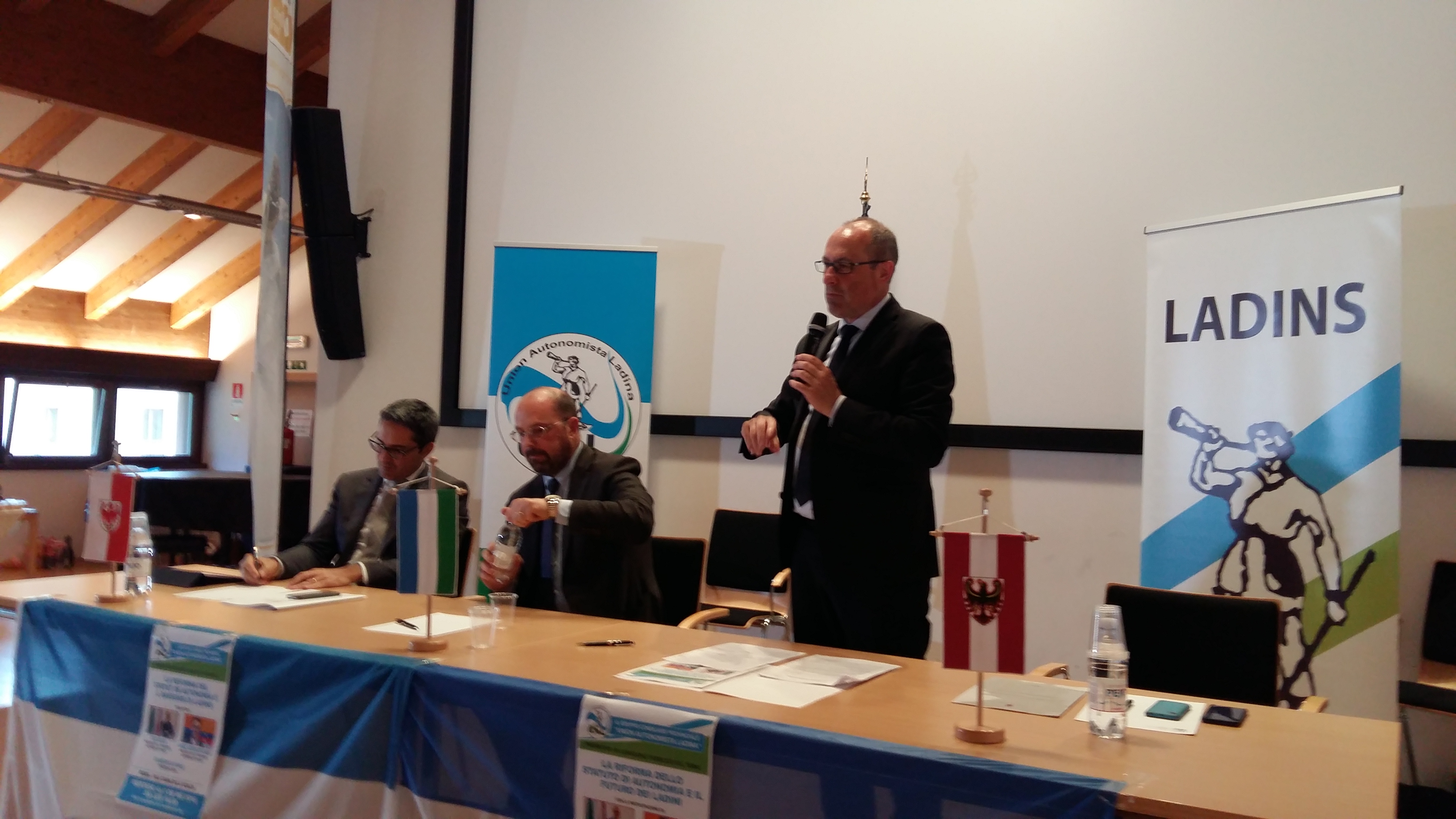 Anche per il presidente Rossi la questione delle minoranze assume oggi una particolare rilevanza. La riforma dello Statuto ha preso corpo in una fase di progressiva contrazione delle risorse pubbliche, determinata anche dai nuovi orientamenti dell'Unione europea in tema di debito pubblico. Contestualmente, le richieste che erano state avanzate negli ultimi anni dalle regioni riguardo ad un maggiore federalismo, e che si erano concretizzate nella riforma della Costituzione del 2001, sono approdate a risultati del tutto insoddisfacenti. "Da li in poi anche per la nostra Autonomia speciale e' iniziata una stagione difficile. Negli ultimi due anni di legislatura, noi e Bolzano abbiamo cercato quantomeno di definire il 'campo da gioco' sul piano giuridico-costituzionale, e di blindare le nostre capacità di spesa. Riguardo alla nuova riforma costituzionale che sta avanzando, che pure contiene elementi seducenti, in termini di risparmi, di lotta agli sprechi, in generale si sta andando in una direzione opposta rispetto al 2001. Ci sono però sgomento elementi che salvaguardiamo la nostra specialità. Abbiamo ottenuto innanzitutto, con una apposita clausola, di poter procedere nel cammino di riforma della nostra Autonomia previa intesa con lo Stato. Permane inoltre l'aggancio internazionale, esistente fin dalle origini, ovvero dall'accordo Degasperi-Gruber, che impedisce di ridurre le nostre competenze. Tuttavia anche questo non basta: ci vuole perciò un popolo che rivendichi l'Autonomia, come ai tempi dell'Asar. C'è infine un ultimo elemento che depone a favore della nostra Autonomia: il buongoverno, che ha impedito lo spopolamento della montagna a cui si è assistito altrove. Questo deve diventare un paradigma positivo anche per gli altri. Dobbiamo riuscire a fare in modo che la nostra esperienza di autogoverno dal basso venga percepita dalle altre regioni e poi dallo stato come un'opportunità". Recentemente una legge provinciale ha istituito in Trentino la Consulta, che ha il ruolo di coinvolgere la comunità trentina nella creazione di un comune sentire e di una visione futura dell'Autonomia, a partire dal quale i tecnici e poi la politica saranno chiamati a scrivere le nuove regole, in seno al Consiglio regionale. "Indietro non si torna - ha detto ancora Rossi - ma io penso che sia venuto il momento di impostare un rapporto ancora più adulto fra le due Province. Ci sono temi, problemi e opportunità che possiamo immaginare di gestire assieme. La questione ladina è uno di essi. L'Autonomia del futuro dovra' essere un'Autonomia responsabile, duratura, e quindi non transitoria, pienamente operativa, al riparo cioè dall'invadenza della Corte costituzionale, ed ancora, un'Autonomia solidale e dialogante, anche in una proiezione europea e transfrontaliera".