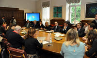 L’incontro di presentazione alla stampa, che è seguito alla seduta del Cda, è stato introdotto da Sara Ferrari, assessora all’Università e Ricerca della Provincia autonoma di Trento, ed ha visto la presenza dei vertici degli enti soci di HIT: il rettore dell’Università degli Studi di Trento Paolo Collini e i presidenti di Fondazione Bruno Kessler Francesco Profumo, Fondazione Edmund Mach Andrea Segré e Trentino Sviluppo Flavio Tosi. «Il 3 giugno dello scorso anno - ha detto l'assessora Ferrari - ci eravamo presi un impegno forte, dicendoci pronti ad una scommessa di fondamentale importanza per il Trentino: quella di riuscire a valorizzare gli investimenti fatti in questi anni nella ricerca, che hanno portato la nostra Università e i nostri centri ad un livello di eccellenza, riuscendo a coniugarli sempre più e sempre meglio con gli investimenti fatti in campo economico e con la vitalità e il dinamismo delle aziende locali». L’assessora ha ringraziato il Cda uscente e presentato i nuovi membri del board di HIT ed il suo direttore Alessandro Commito. «Competenze importanti – ha detto Ferrari – che potranno aiutarci a posizionare questo consorzio, questa alleanza, l’intero sistema trentino, all’interno delle grandi occasioni di investimento che possono esserci a livello nazionale ed internazionale».